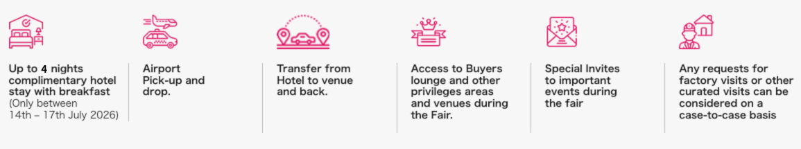 日印貿易を促進する為に JIIPA は、世界最大級展示会 「BHARAT TEX」 インド唯一のテキスタイル・アパレル及び衣料品生産設備展示会にバイヤー向け宿泊費サポートプログラム(最大4泊)を提供させて頂きます。 To promote Japan–India trade, JIIPA will offer a Hosted Overseas Buyer Program ( Up to 3 nights ) to one of the world’s largest exhibitions, “BHARAT TEX”—India’s leading textile, apparel, and garment production equipment exhibition.